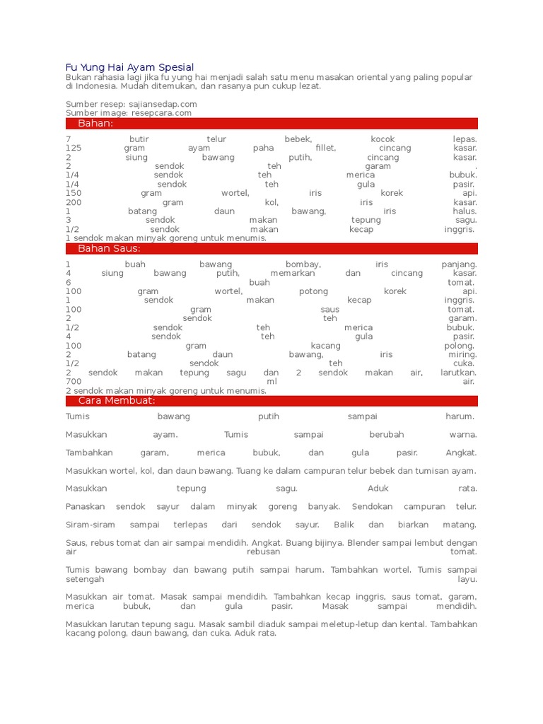 Resep Fuyunghai Praktis Sederhana Bahan Bahan Cara